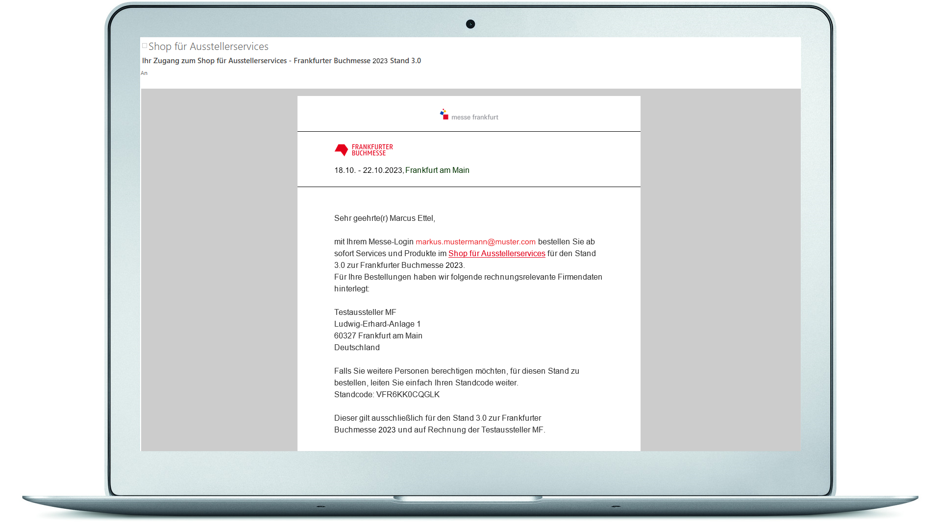 Sobald Ihr Messe-Stand im Shop für Ausstellerservices für Ihre Bestellungen zur Verfügung steht, erhalten Sie eine E-Mail.